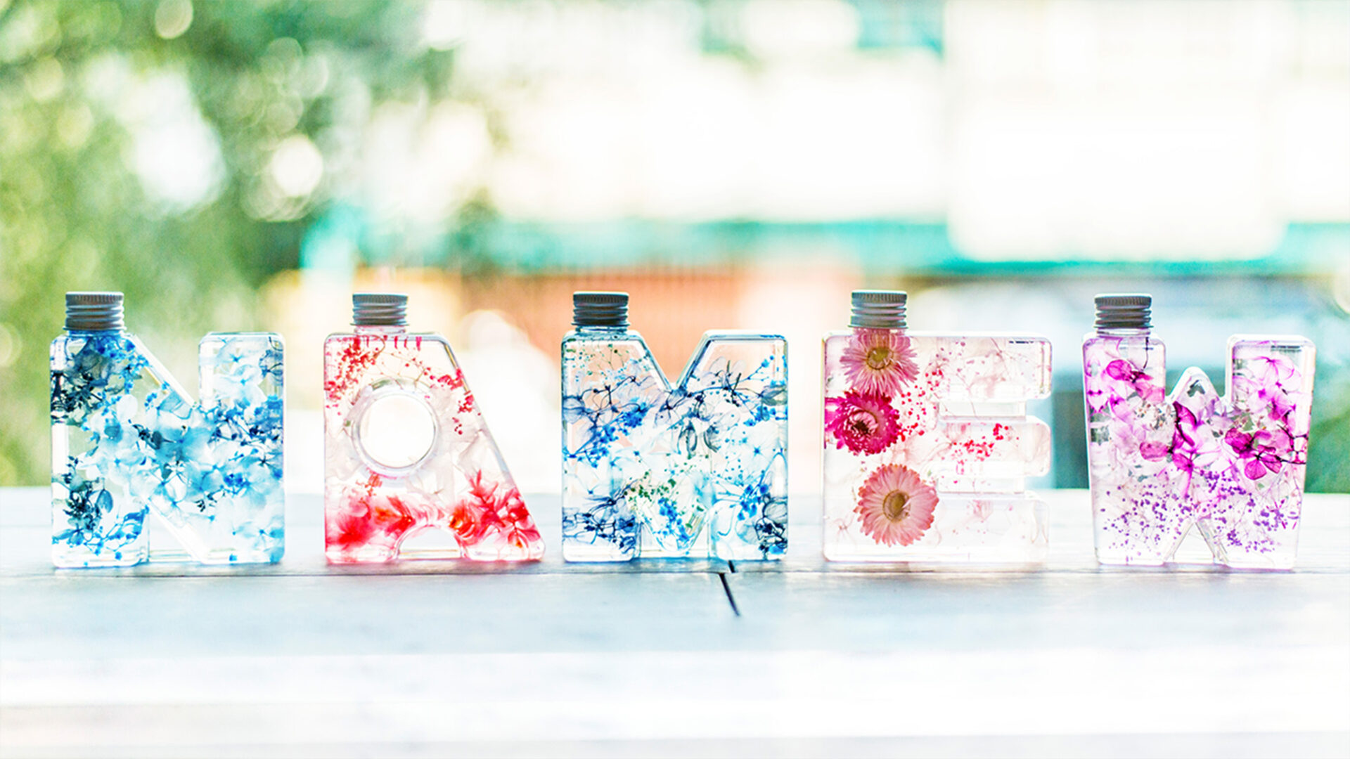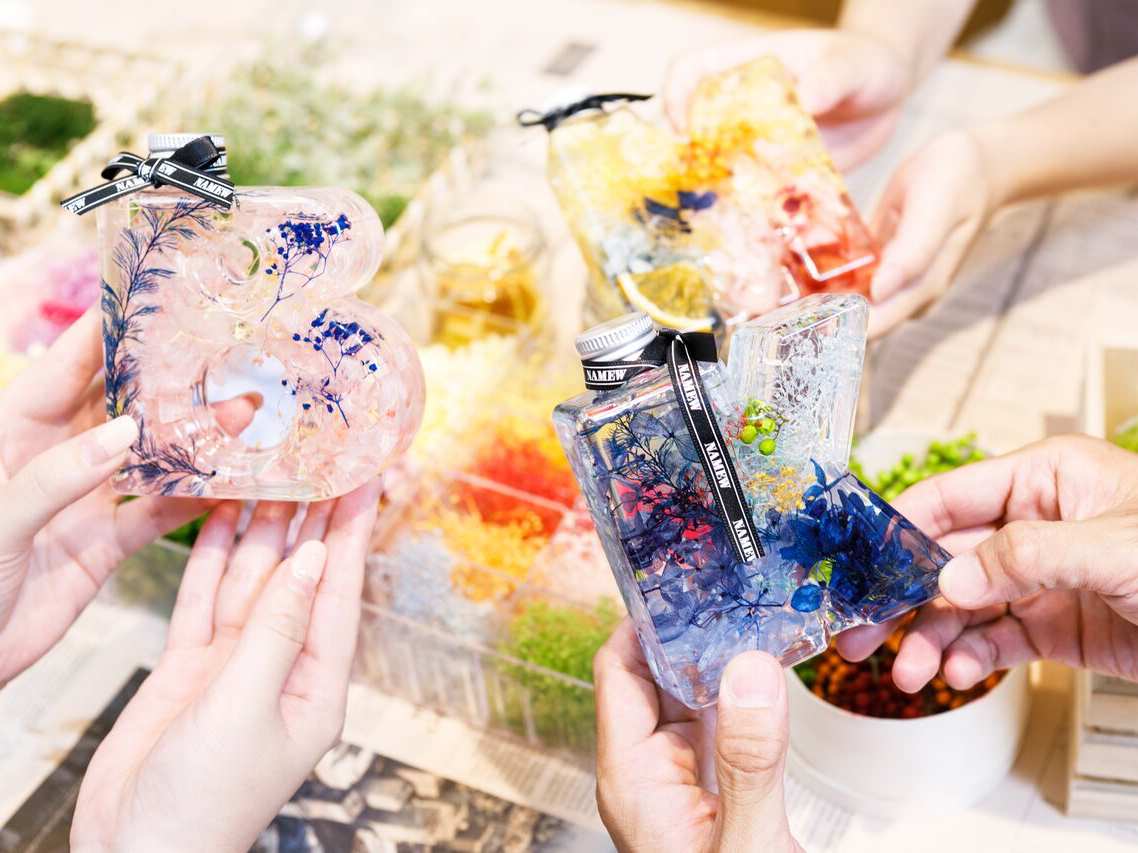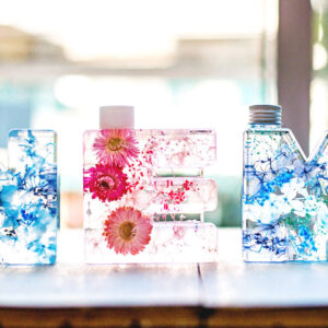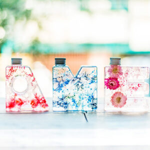 NAMEWとはイニシャル(アルファベット)を型どったボトルに入ったハーバリウム「イニシャルハーバリウム」のブランド名になります。